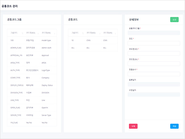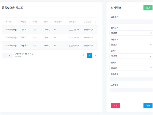 AI 모델러가 개발한 반도체 수율 분석 및 이상감지 인공지능 모델을 효율적으로 분류하여 관리 할 수 있도록 회사별로 공통 그룹 및 코드를 관리 할 수 있는 기능을 제공