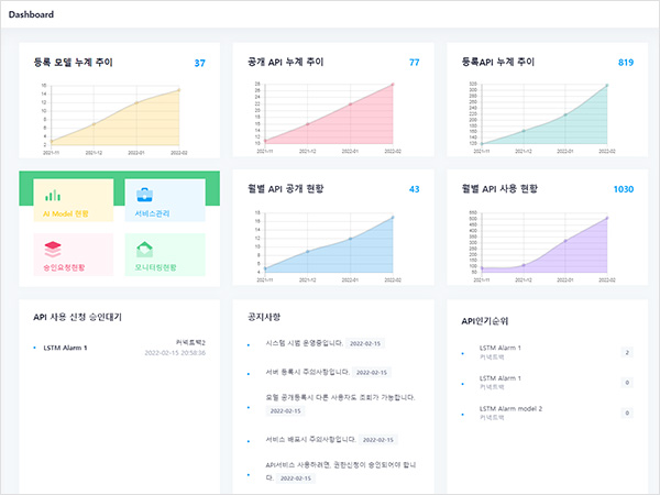 AI 모델 및 코드의 공개 관리를 통한 공유 와 재사용성을 강화하고 배포된 API 서비스에 사용에 대한 결재를 통한 권한 관리